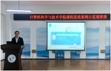 然后,2021年beat365教师课程思政能力大赛获奖教师王翠青作示范观摩课。她以编译原理课程为例,从词义分析、语法分析、中间代码优化、编译程序发展历程等方面分享了思政元素的发掘方法,通过案例教学、微课视频、课后小组讨论等教学方法,融入人文因素和情感因素,增强专业课教学的吸引力,提升学生学习的兴趣。