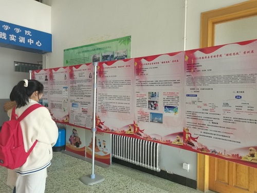 课程思政教学案例以展板的形式图文并茂地向师生分享课程思政建设经验。根据课程目标、教学内容、思政元素的融合设计等要素,教师找准“课程思政”切入点,选材上从时事、实践和历史等几个方面科学挖掘课程所蕴含的思政元素:《宏观经济学》将我国公益就业岗位案例与失业的原因、失业的影响、失业的应对等经济理论的讲解相结合;《微观经济学》案例中引导学生关注企业家,重视企业家精神,鼓励企业家创新;《项目管理》通过火神山医院建设案例的引入,实现课程培养的情感目标;《会计职业道德》透视个税改革,感受以民为本,激发学生爱国情怀;《大学生软技能提升实践》课程中重大危机认识与处理分享研习选择以新冠疫情危机为例;《管理经济学》以华润为例指出创建与管理企业必须树立远大理想和崇高追求;《工程施工》通过南京长江大桥、杭州湾跨海大桥、港珠澳大桥的施工过程案例,培养学生大国工匠精神以及自强不息的民族精神;《金融学前沿》通过新冠疫情控制体现了我国的制度优势;《财务管理学》围绕企业筹资、投资、经营、分配等课程核心内容,融入并贯穿相关价值理念;《审计学》以中国近代审计史上的先行者谢霖先生的故事为例,指出对民族兴衰存亡之职责和义务的感知是当代社会每个人应该拥有的情怀;《国际商务谈判与礼仪》以案例形式阐明任何工作都需要团队所有成员的共同努力和相互配合;《市场调研与预测实践》以三个案例展示严谨的市场调研态度和职业素质。所有案例均体现了思政元素在专业知识中的有机融入,促进了思政教育与专业教育的协同推进。