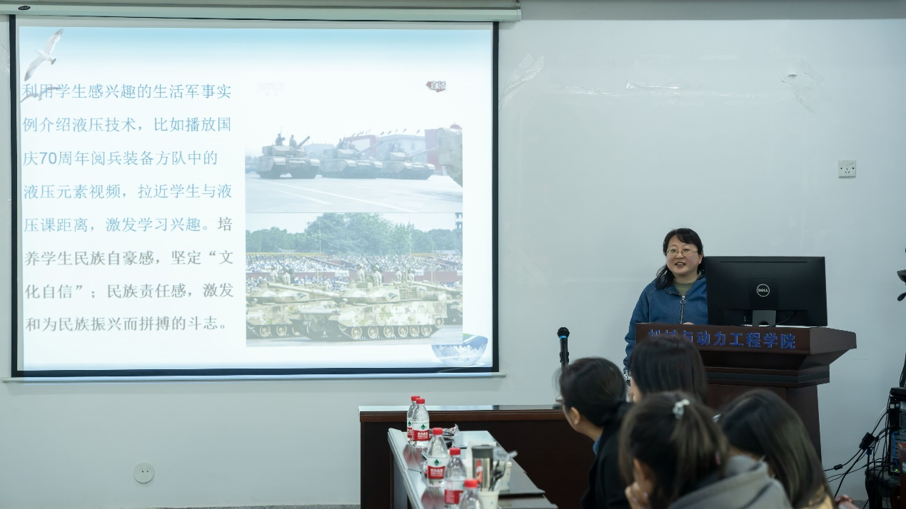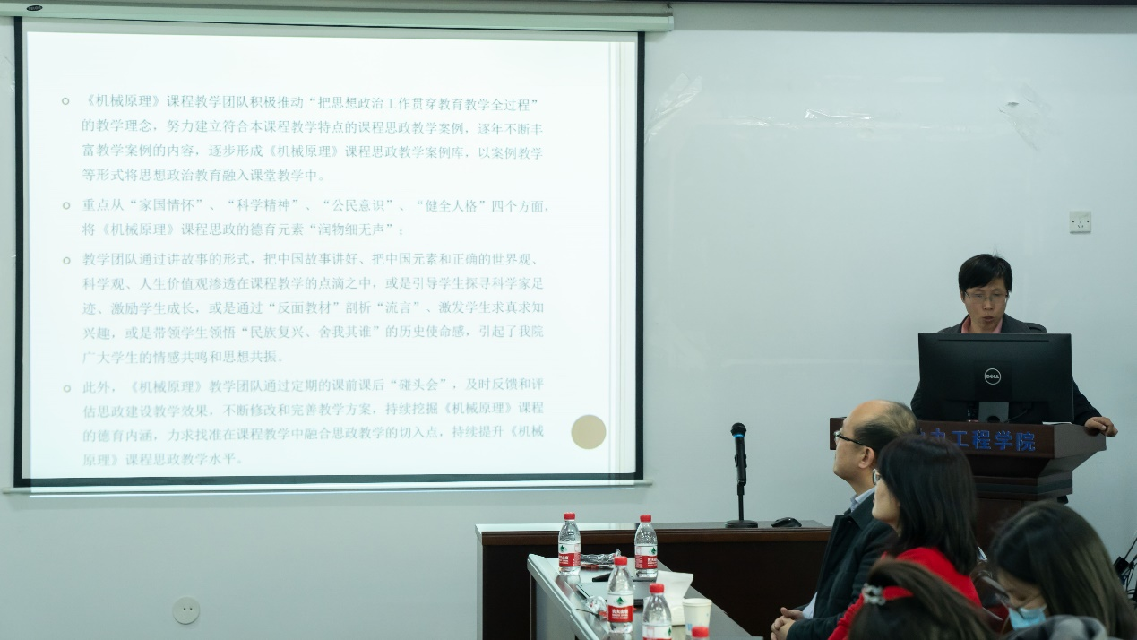 装备可靠性研究所李铁军老师做了“课程思政”引领下的机械原理课程教学改革探讨的报告。将课程思政作为为党育人、为国育才的重要方式,修订机械原理课程的教学大纲,将“爱国精神”、“科学精神”、“工匠精神”融入《机械原理》课程思政教学中。秉承“把思想政治工作贯穿教育教学全过程” 的教学理念,创建基于工程实践的思政教学案例库。培养学生实事求是、尊重自然规律的科学态度,建立勇于克服困难的精神,树立正确人生观、世界观及价值观。