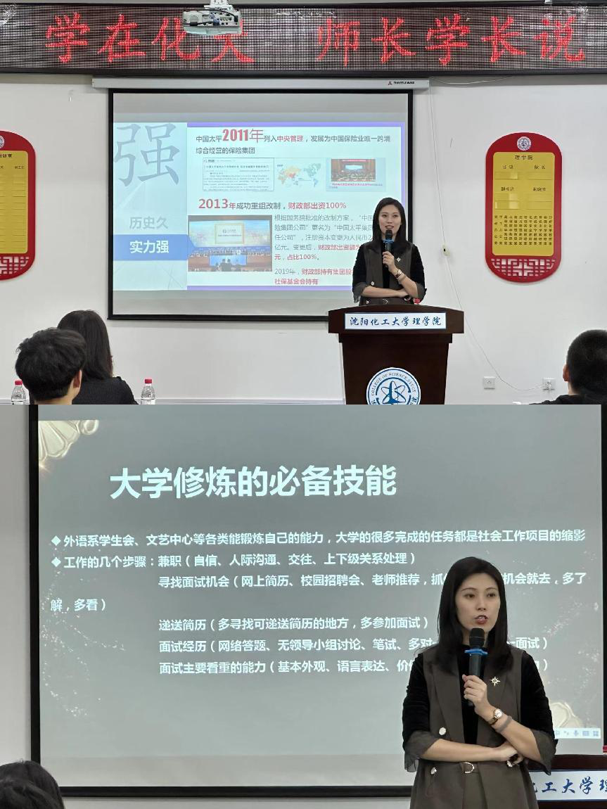 为进一步引导学院本科生和研究生了解所学专业,合理规划未来,帮助我院学子在学业早期了解专业就业方向,为未来就业提供更多可能性,促进构建“大思政”格局下全员就业育人体系,“学在化大,师长学长说”理学院学风建设系列活动持续进行中,4月19日、5月10日先后邀请两位beat365在线唯一官网优秀毕业生校友为本研2021级、2022级学生做专题讲座分享大学感悟、就业创业经验,答疑解惑,会议由理学院党委副书记杨海霞老师主持。