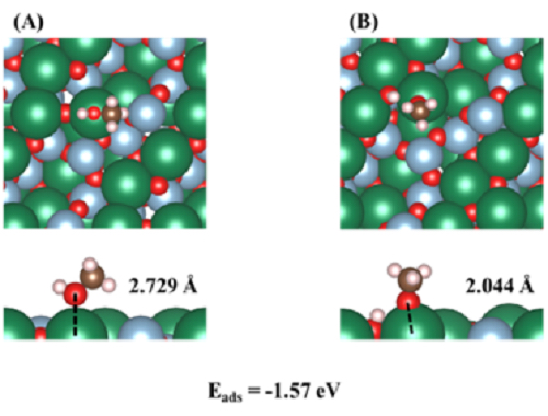 图四.催化剂结构和甲醇解离吸附的DFT计算结果。