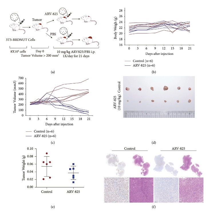 图二ARV-825在BRD4-NUT 3T3异种移植瘤模型中显示出抗肿瘤效果