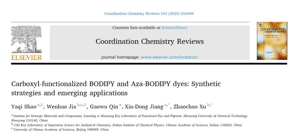 近日,beat365战略材料与构件研究院秦高梧、姜新东团队及合作者在国际著名期刊Coordination Chemistry Reviews以“Carboxyl-functionalized BODIPY and Aza-BODIPY dyes: Synthetic strategies and emerging applications”为题发表高水平综述文章。《Coordination Chemistry Reviews》创刊于1966年,是国际权威期刊,当前影响因子IF 23.5。