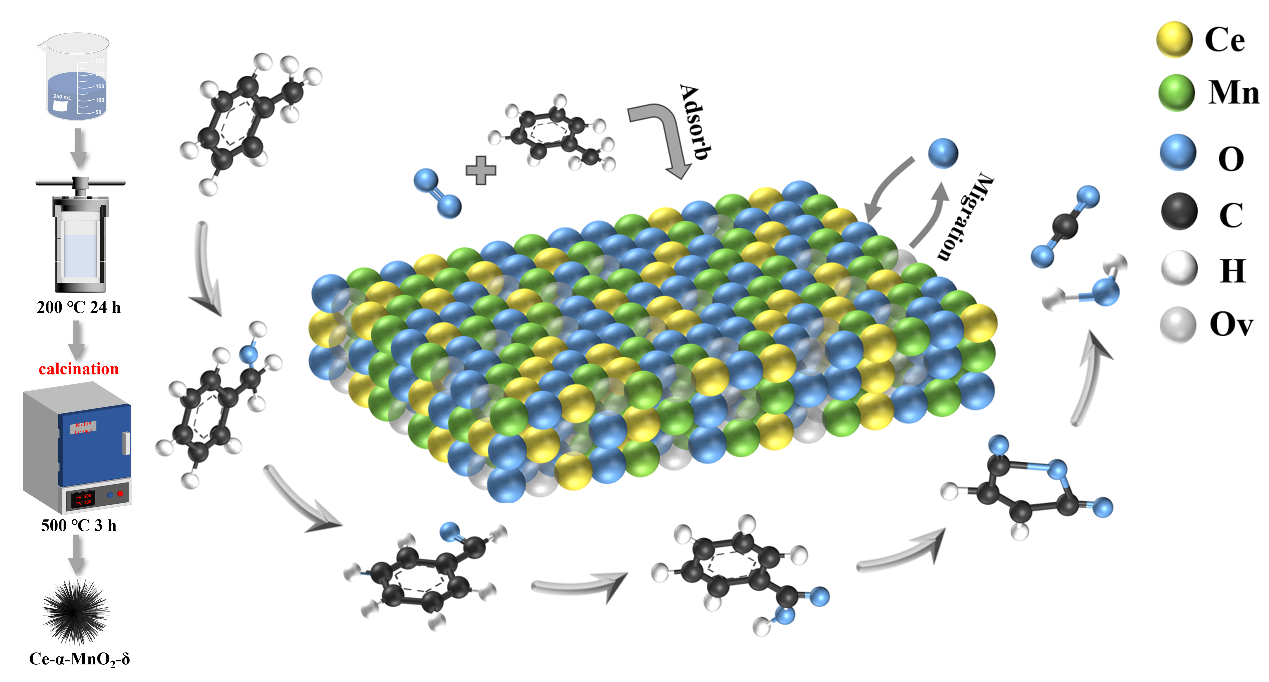 二氧化锰因其晶相可调节、天然丰度高、成本低和稳定性强等特点,被视为氧化分解VOCs的理想催化剂。然而,单金属MnO2对甲苯的催化降解性能有限。环境与安全工程学院张学军教授课题组对高性能二氧化锰基催化剂的制备与其催化氧化甲苯的性能进行了研究和分析,发现通过调控煅烧温度可诱导δ-MnO2向α-MnO2发生相变,实现催化剂由层状结构向隧道结构的转变。结构重构产生的晶格应力和畸变共同诱导了缺陷的形成和金属-氧键的弱化,增大了Ce-α-MnO2-δ催化剂的比表面积,提高了其氧化-还原循环速率,从而改善了甲苯催化氧化性能。2025年6月20日,相关研究成果以Promoting the Reactivity of Surface Lattice Oxygen in Ce Modified α‐MnO2 via a Structure Reconstruction Strategy for Toluene Oxidation为题发表在Small上。第一作者为理学院刘威副教授,第二作者为环境与安全工程学院硕士研究生俞红玉,共同通讯作者为环境与安全工程学院张学军教授和陈希副教授。beat365在线唯一官网为论文的第一单位。