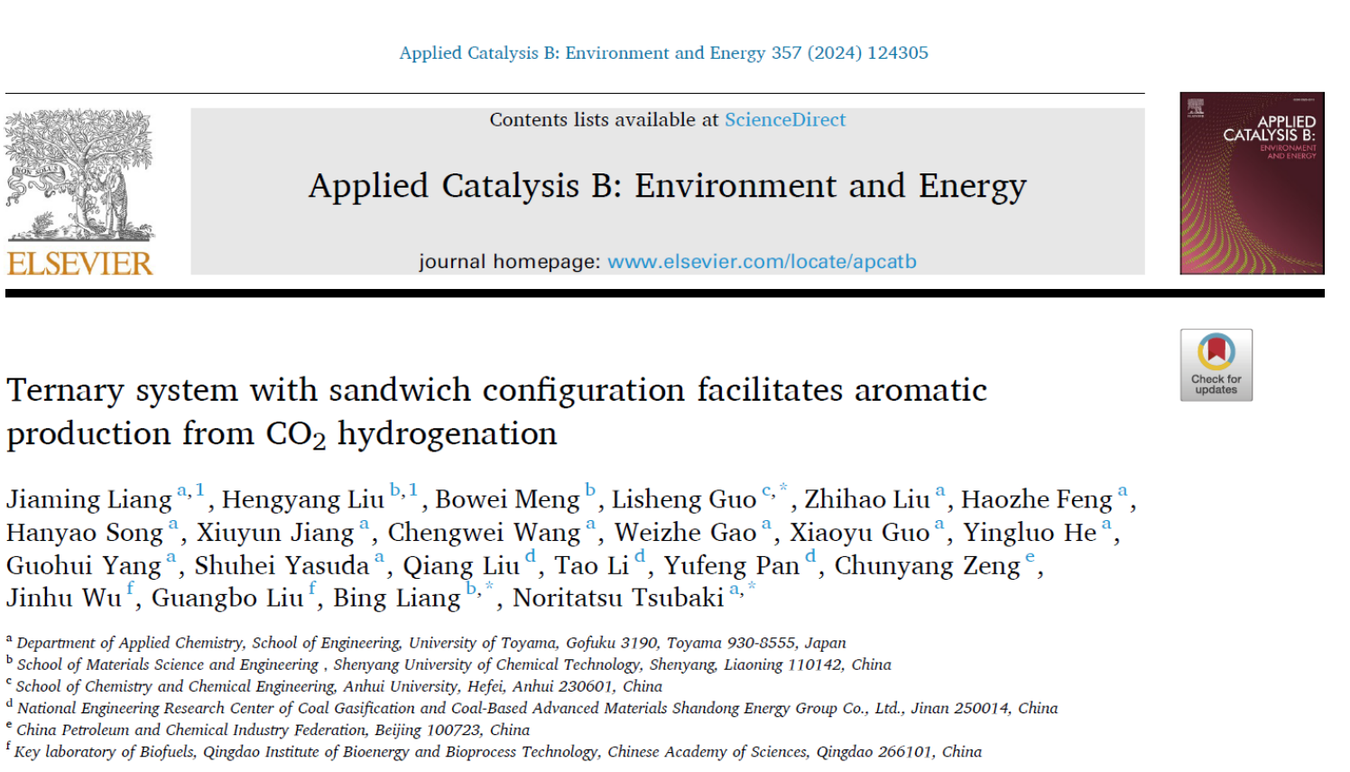 CO2加氢催化系列研究:beat365在线唯一官网梁兵教授团队与日本富山大学椿范立院士团队的精准调控实践与高值转化突破