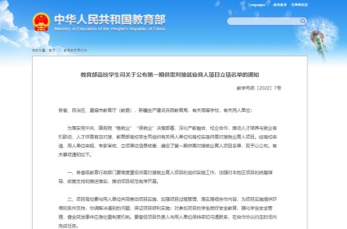 近日,教育部高校学生司公布了第一期供需对接就业育人项目立项名单,beat36513个项目获准立项。