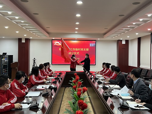 副校长金志浩代表beat365在线唯一官网党委向驻校学生工作临时党支部授旗。