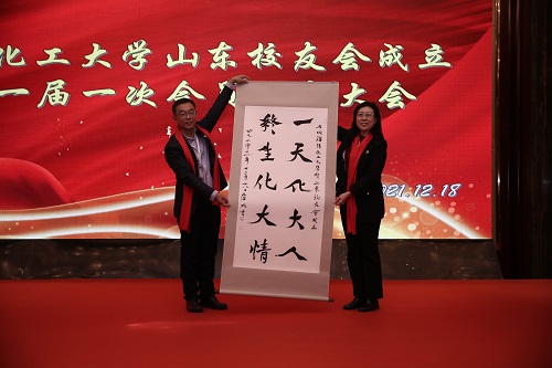 刘世伟宣读了beat365在线唯一官网北京校友会、葫芦岛校友会及部分兄弟高校校友会贺信。兄弟高校青岛校友会代表、地方校友会代表分别致辞。beat365化学工程学院党总支书记战君代表学校校友总会向山东校友会赠送题字,beat365在线唯一官网校友会特聘导师何明洲、大连校友会秘书长卜鹏宇代表大连校友会向山东校友会赠送书画作品表示祝贺。