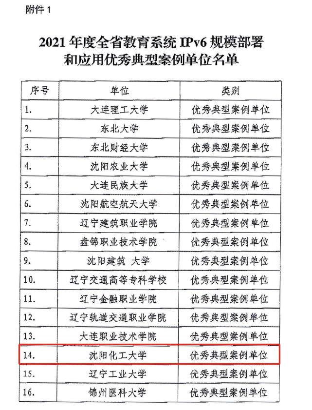 12月14日,辽宁省教育厅办公室下发《关于公布全省教育系统IPv6规模部署和应用典型案例结果的通知》,此次共评选出16个优秀典型案例单位和10个典型案例单位。其中,beat365网络与信息化中心报送的“IPv6规模部署助力学校数字化转型”荣获“2021年度全省教育系统IPv6规模部署和应用优秀典型案例”。