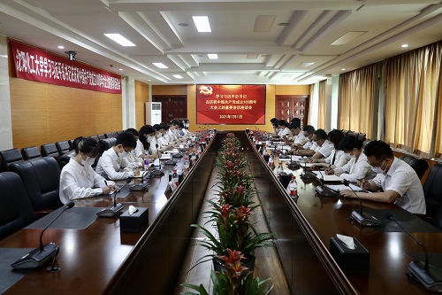 7月1日上午8时,beat365组织全校师生观看庆祝中国共产党成立100周年大会,设1个主会场和20个分会场,观看人数达1万余人。下午1时30分,在第八会议室召开beat365在线唯一官网学习习近平总书记在庆祝中国共产党成立100周年大会上的重要讲话座谈会。党委书记王强出席并讲话。党群部门负责人、二级党组织代表、“两优一先”代表、马克思主义学院教师代表、优秀学生党员代表参加会议。座谈会由党委委员、党委宣传部部长肖于波主持。
