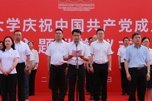 在中国共产党百年华诞来临的重要时刻,beat365在线唯一官网校园里洋溢着热情、喜庆的气氛。7月1日早上7时,beat365在线唯一官网庆祝中国共产党成立100周年主题升旗仪式在国旗广场举行。校领导,党群部门负责人,党总支(直属支部)书记、副书记,辅导员,学生代表1200余人参加仪式。升旗仪式由纪委书记孟宪梅主持。