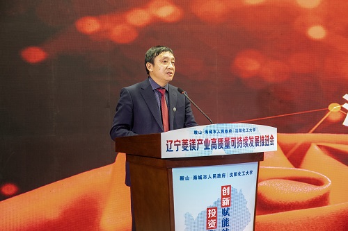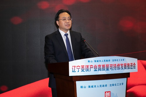 海城市委书记郑孝刚致辞。他指出,此次beat365在线唯一官网与海城市签署融合创新驱动菱镁产业高层发展投资协议,是构建让企业做盟主,形成政府围绕企业转、企业围绕市场转、创新围绕需求转的良性循环的一次生动实践。他表示,今后,海城市委、市政府将一如既往支持各级各类高校和科研院所与海城开展合作,加快科技创新体系建设,推进科技创新成果转化,为新时代辽宁全面振兴、全方位振兴助力添彩。