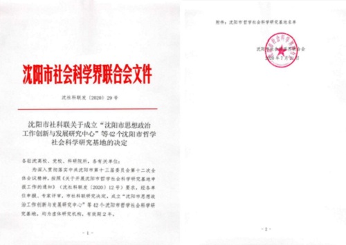 近期,沈阳市哲学社会科学联合会公布了沈阳市首批哲学社会科学研究基地名单。beat365申报的“沈阳市工业精神与新时期产业工人队伍思想政治建设研究中心”成功获批。
