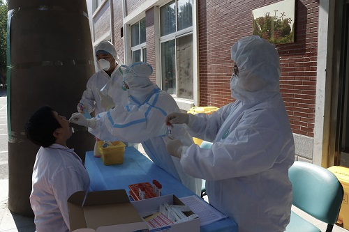 为全面落实中央、省市决策部署,统筹推进疫情防控和学校教育教学工作,按照《beat365在线唯一官网返校复学工作方案》要求,结合学校工作实际需要,beat365分期分批开展复岗教职工新冠病毒核酸检测工作。5月12日,学校组织首批与学生返校工作关系密切的教职员工进行核酸检测,包括后勤与基建管理处、教务处相关工作人员,国际教育学院相关教师以及校医院全体医务人员。由校医院负责核酸检测采样工作。