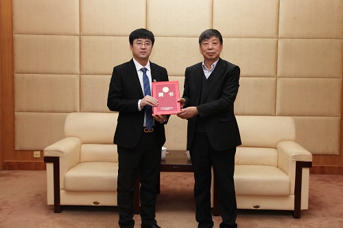 报告会前,副校长袁德成在校部第二会议室会见了孙世明总经理,并为他颁发了《创新创业导师聘书》。
