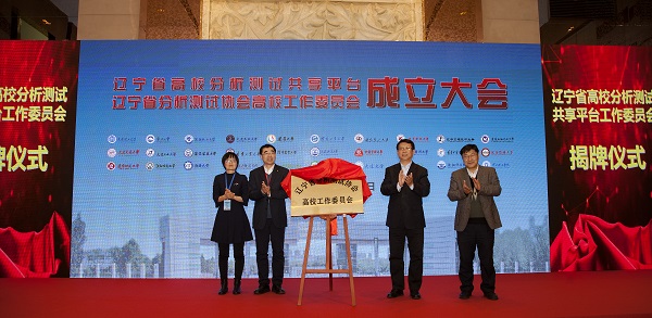 中国分析测试协会副理事长刘成雁、辽宁省分析测试协会理事长张金生等嘉宾为辽宁省分析测试协会高校工作委员会揭牌。