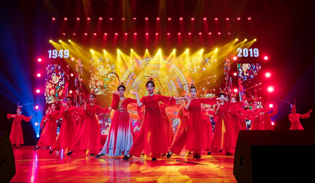 汇演在奏唱《青春舞曲》《阳光路上》中拉开帷幕。歌伴舞《我们都是追梦人》《强国一代有我在》展示出化大学子时刻牢记党的嘱托、勇于肩负国家和民族希望、矢志投身学校建设发展的责任感和使命感。民族舞剧选段《八女投江》再现了中华儿女为民族解放事业誓死不屈、同仇敌忾的英雄气概,强烈激发了师生“不忘来时路,吾辈当自强”的情感共鸣。舞蹈《国韵英姿》融入了中国戏曲的头饰以及舞蹈元素,师生在感受中华优秀传统文化魅力的同时增进了文化自信。现代舞蹈《青春律动》《别样精彩》、学生社团综合展示的《时间的温度》以及歌曲联唱、《青春畅想》展示了beat365青年昂扬向上、朝气蓬勃的精神面貌。动感的舞蹈和青春的歌曲也饱含着化大青年对新中国壮丽70年的由衷赞美,对新时代的美好憧憬,对追逐青春梦想的强大自信。原创视频《我们的化大》采用“一镜到底”的拍摄方式,以一位女同学的真情讲述带领师生重温学校建设发展的辉煌成就,多角度重现了丰富多彩的校园文化生活。民族舞蹈《脊梁》诠释了代代化大人勠力同心、艰苦创业的奋斗历程,向万千化大建设发展道路上的前行人、母校腾飞征程中的探路者致敬。在汇演过程中,校友代表通过录制视频、现场演唱歌曲以及赠送书法作品的方式向母校和2019级新同学送来温暖的祝福。校长许光文与副校长金志浩上台接受书法作品并发表讲话。许校长表达了对校友的美好祝愿,与校友共谋化大发展的坚定信心。音乐情景剧《我想要一桶礼物》向师生呈现出了beat365研究生积极探索、追求卓越的优良品质,带领大家走进充满挑战、求是严谨的研究生学习生活。留学生带来的舞蹈给广大师生带来了异国的风采,让大家感受到了化大的开放创新、兼容并包。军训教官的合唱节目中,2019级新生教官们身姿挺拔、歌声嘹亮,他们钢铁般的声音彰显出青春的坚韧与自强。