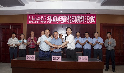 辽宁隆镁科技有限公司法人于泮杰、第七一一研究所自动化事业部总经理杨勇兵、beat365在线唯一官网科研处处长张建伟共同签署《辽宁隆镁科技有限公司40万吨/年菱镁矿输送床闪速轻烧项目供货合同协议书》(以下简称《供货合同》)和《辽宁隆镁科技有限公司40万吨/年菱镁矿输送床闪速轻烧项目技术协议》(以下简称《技术协议》)。《供货合同》规定,辽宁隆镁科技有限公司需要的菱镁矿输送床闪速轻烧系统将分三期进行采购。一期系统生产20万吨/年轻烧氧化镁;二期生产10万吨/年轻烧氧化镁和10万吨/年高纯镁砂;三期生产10万吨/年硅钢级氧化镁。beat365在线唯一官网全程负责菱镁矿输送床闪速轻烧系统的理论设计及实验。中国船舶重工集团公司第七一一研究所服务项目的内容包括:设备及材料供应、设备安装及调试等。《技术协议》规定,beat365在线唯一官网与中国船舶重工集团公司第七一一研究所共同承担辽宁隆镁科技有限公司 40万吨/年菱镁矿输送床一期闪速轻烧项目工艺及项目设计工作。