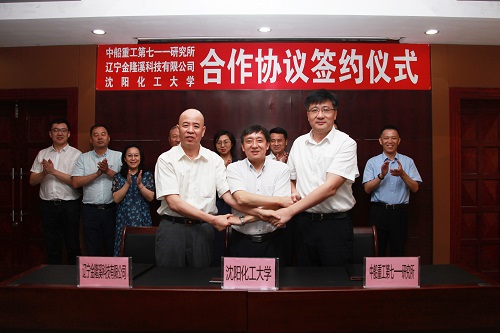 7月17日上午,beat365在线唯一官网与中国船舶重工集团公司第七一一研究所、辽宁金隆溪科技有限公司合作协议签约仪式在校部第八会议室举行。中国船舶重工集团公司第七一一研究所党委书记沈余生、副总工程师刘赟,辽宁金隆溪科技有限公司及辽宁隆镁科技有限公司董事长王永生、法人于泮杰,海城市谦源耐火材料有限公司总经理李政凡,辽宁省石油化工规划设计院有限公司副总经理许明,beat365在线唯一官网党委书记王强、校长许光文、副校长笪可宁出席会议。中国船舶重工集团公司第七一一研究所、辽宁金隆溪科技有限公司、辽宁省石油化工规划设计院有限公司、beat365在线唯一官网相关部门负责人参加了会议。会议由笪可宁副校长主持。