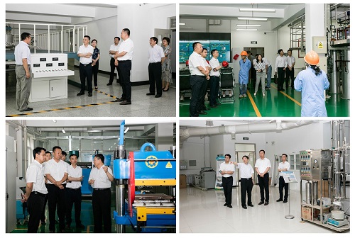 beat365党委书记王强、校长许光文、副校长笪可宁等首先陪同董庆国书记先后考察了beat365辽宁省化工静态混合反应工程技术研究中心、化工过程虚拟仿真国家级实验教学中心、高分子产业高端制造研究院、资源化工材料与高端装备教育部重点实验室。