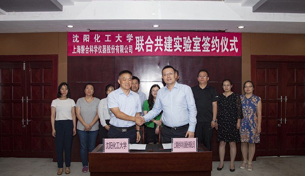 赵学伟董事长和金志浩副校长分别代表双方签订《共同组建磐合科仪-化工大学联合实验室校企合作框架协议》。根据协议,双方以联合实验室为载体,作为双方研发、培养人才的基地以及双方申请科研项目、申报科研成果的基地。