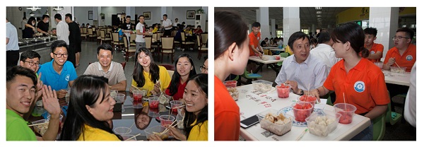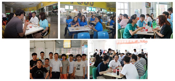 校领导们分别来到各个食堂会场,与3200名即将学成出发的化大骄子们共同品尝饺子,共同度过大学最后一餐的美好时刻。宴会现场温情满满、气氛热烈。毕业生们纷纷表达着对母校和老师四年培养的感谢和即将离校的不舍。校领导们亲切地和毕业生们自拍、合影,为大家在文化衫上签名留念,还与专程来参加毕业典礼和宴会的学生家长们亲切交谈。