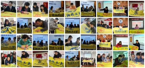 本次校徽刺绣接力活动是化大历史上涉及面最广,参与度最高的活动。全校教职工通过一针一线缝制出化大全体教师的力量,增进彼此的情谊,展现新时代的化大精神,他们通过手手相传和绣针20余万次上下穿梭表达着对学校70华诞的祝福。活动的成功举办极大地激发了化大人强烈的爱校情怀、荣校愿望和兴校担当。全体化大人在校党委的带领下发扬“艰苦奋斗、知难而进、追求卓越、守正创新”的新时代化大精神,助力学校走出内涵式、创新型、特色化办学之路,肩负起化工行业高质量绿色发展的重任,众志成城,助力化大腾飞!