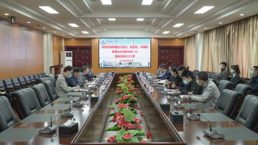 会见会上,王强对赵永圣一行的到来表示热烈欢迎,对铁西区委、区政府长期以来对学校基础设施建设、科学研究、高端人才引进等方面的大力支持和帮助表示感谢。他指出,今年是党的二十大召开之年、实施“十四五”规划关键之时、学校建校70周年之际,更是化大发展大年。学校将立足七十年,放眼一百年,一如既往扎根辽沈、铁西办教育,全面加强与铁西区政府合作,与地方产业同向同行。