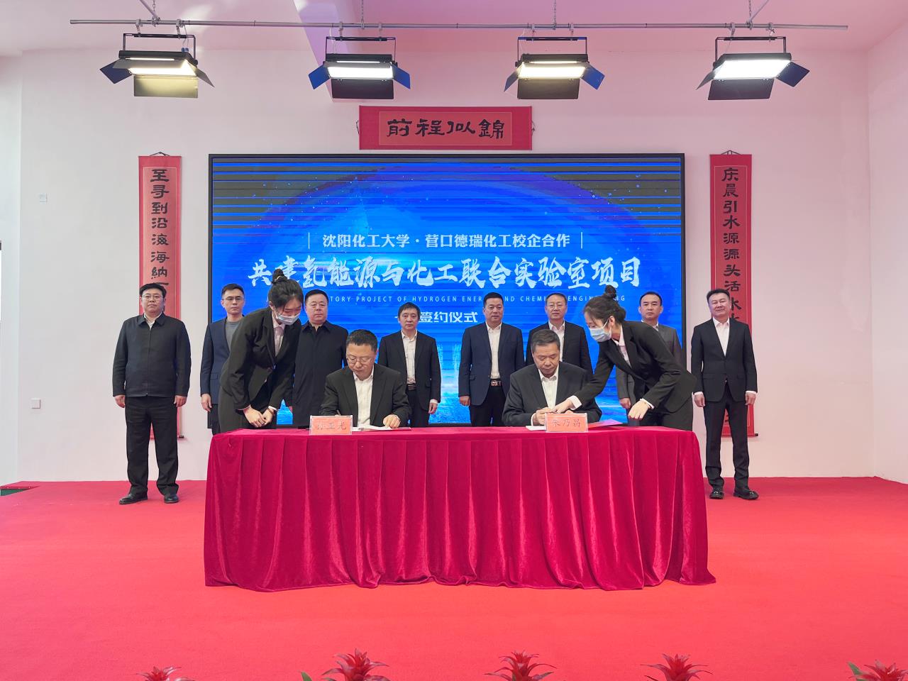2月6日上午,beat365与营口德瑞化工有限公司就共建“氢能源与化工联合实验室”举行签约仪式。校长许光文、副校长孙亚光,营口市委常委、副市长何庆伟,站前区委书记王正刚,站前区委副书记、区长黄宇光等领导参加签约仪式。