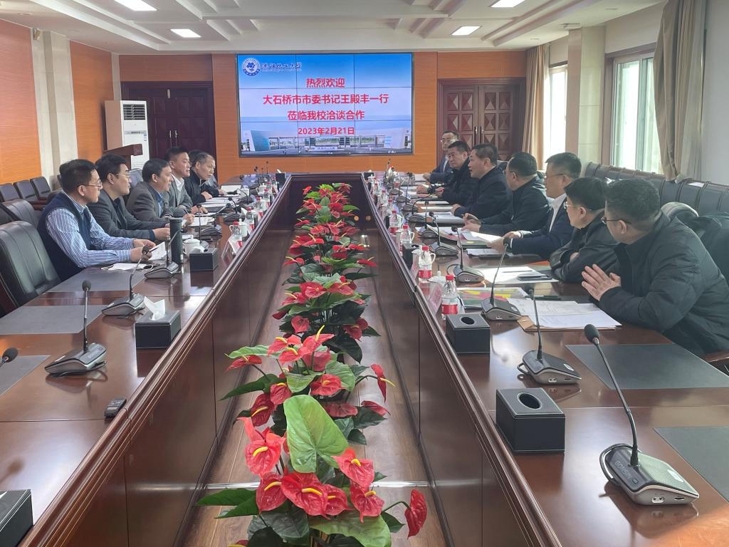 2月21日下午3点30分,beat365在校部第八会议室召开与菱镁产业学院合作会谈会。大石桥市委书记王殿丰,南楼开发区主任王昌阳,市委常委、副市长张雨,南楼开发区副主任杨禹及教育局、工信局、自然资源局负责人,beat365校长许光文、副校长金志浩,党委统战部、教务处、招生与就业工作处负责人参加会议。