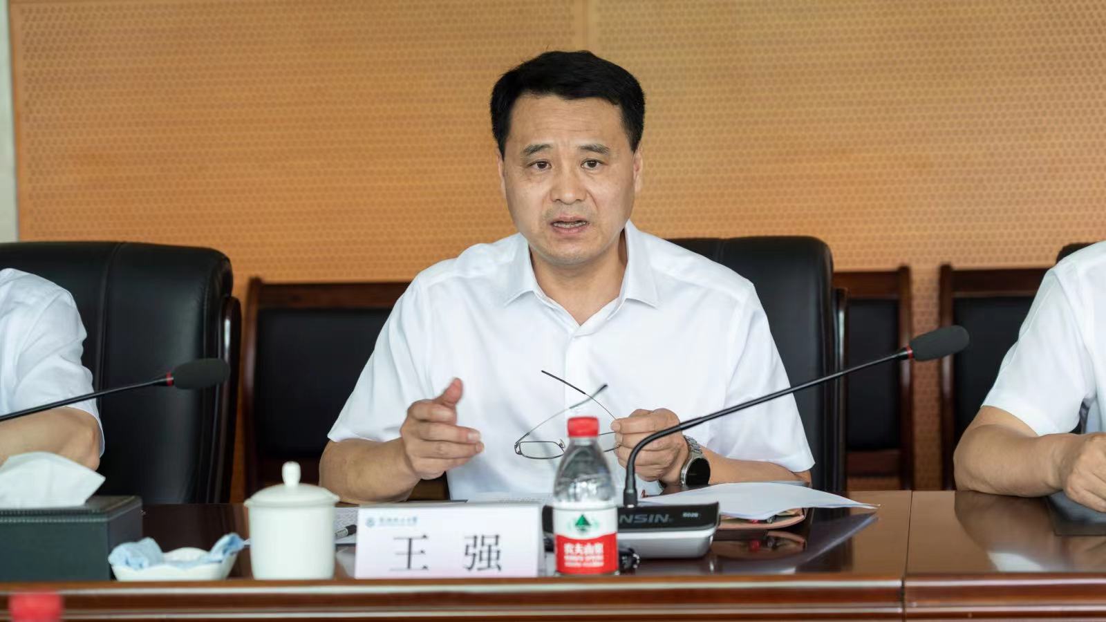 7月21日下午2时,beat365在校部第八会议室召开学习贯彻习近平新时代中国特色社会主义思想主题教育调研成果交流会。省委第十九巡回指导组副组长刘娇、指导组成员于强到会指导。学校领导班子成员、党委常委,二级党组织书记,主题教育领导小组各工作组负责人参加会议。校党委书记王强主持会议。