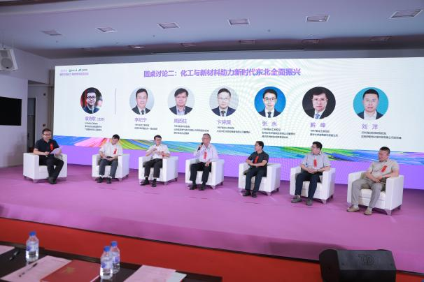 论坛报告会后举行了两场圆桌讨论。第一场圆桌讨论的主题是“化工与新材料助力碳达峰碳中和实现”,邀请了厦门海方达新材料科技有限公司董事长闫长明,中国石油国家高端智库中心副主任、中国石油安全环保技术研究院副院长雍瑞生,海峡未来新能源有限公司董事郑大勇,中石化化工销售华北分公司党委副书记高宁,辽宁大学化学院院长葛春华,北京衍微科技有限公司总经理陈博等六位清华校友担任讨论嘉宾,清华大学化工系副主任吕阳成主持讨论。嘉宾们结合自身背景,分享了对双碳目标下化工和新材料领域应该做什么、能够做什么的思考和实践。第二场圆桌讨论的主题为“化工与新材料助力新时代东北全面振兴”,邀请了沈阳市军民融合办一级巡视员李纪宁,北京索英电气技术有限公司常务副总经理周西柱,大连中石化物资装备有限公司董事长卞诗淏,苏州业华环境科技有限公司董事长张永,清华大学政策研究室副主任解峰,沈阳伊斯特化学科技有限公司总经理刘洋等六位清华校友担任讨论嘉宾,清华校友总会原副秘书长、广西百色市右江区副区长袁浩歌主持讨论。讨论充分体现了清华校友们在新能源、新材料、生态环保、公共管理、产业赋能、人才振兴等各个领域对新时代东北全面振兴的思考,对助力东北锻长板、补短板,开辟发展新领域新赛道,不断塑造发展新动能新优势给出了具体的路径建议。