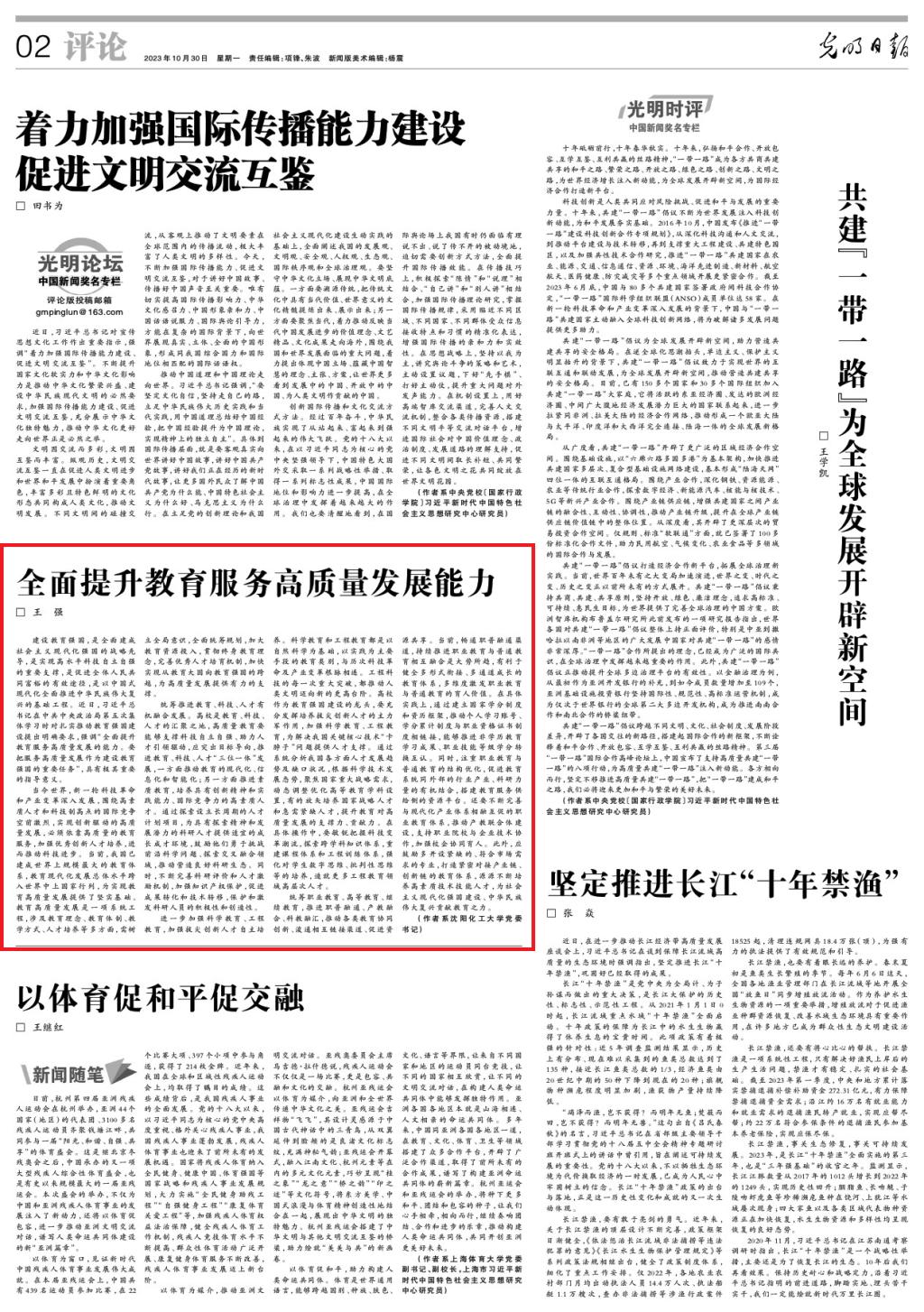 10月30日,《光明日报》“光明论坛”专栏刊发beat365党委书记王强撰写的题为《全面提升教育服务高质量发展能力》署名文章。