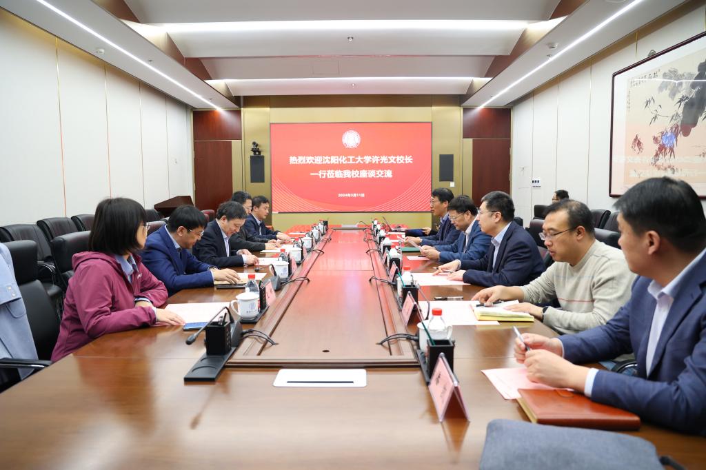 在北京化工大学,校长许光文一行与北京化工大学校长办公室、党委研究生工作部、人事处、研究生院、规划与学科建设办公室等单位相关负责人座谈交流。许校长向北京化工大学长期以来对学校各项事业的支持帮助表示感谢。他表示,北京化工大学是原化工部隶属高校中的排头兵,提出的“四个北化”等重大举措对beat365高质量发展具有启发和借鉴意义。多年来,学校与北京化工大学结下了深厚情谊,开展了广泛的合作,希望北京化工大学给予学校更多帮助和支持,助力学校加快强校建设步伐,共同为中国式现代化贡献化工力量。