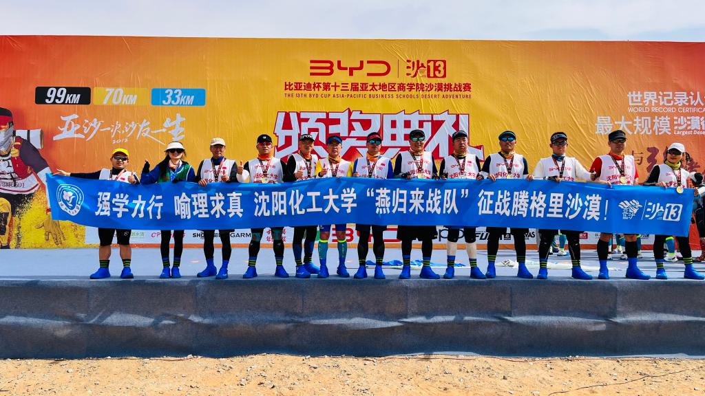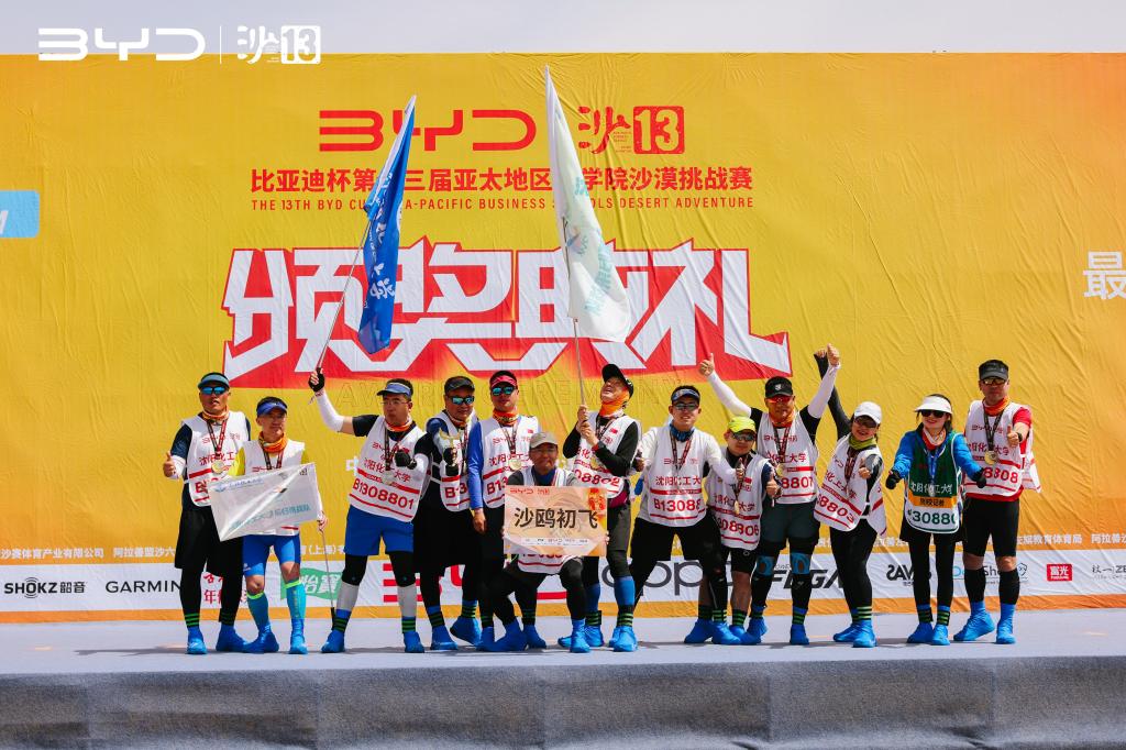 5月2日至4日,比亚迪杯第十三届亚太地区商学院沙漠挑战赛(简称“亚沙赛”)在内蒙古阿拉善腾格里沙漠隆重举行,来自全国的106所院校派员4000余人参赛。由beat3651977级校友、上海燕归来健康科技有限公司董事长孙江燕赞助支持的beat365在线唯一官网“燕归来”战队(B队12名队员、C队1名队员)首次代表学校参加亚沙赛,B队三天70公里全员完赛,斩获了本届赛事唯一的团体“沙鸥初飞奖”,成为亚沙赛承办以来第四个荣获“沙鸥初飞奖”的团队!