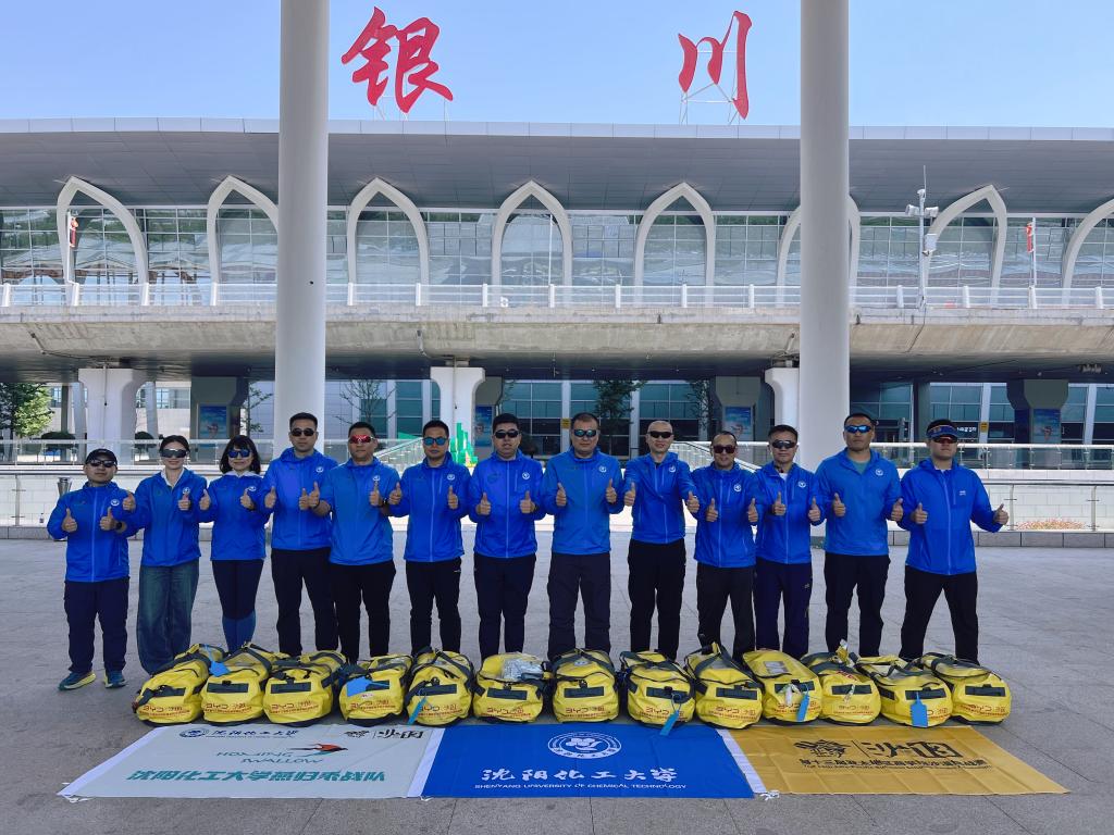 5月1日,队员们集结出征,踏上了充满挑战的腾格里沙漠。比赛第一天,队员们顶着7级狂风乱沙,第一梯队范俊刚、赵志刚、鄂永民三名队员提前1个半小时抵达终点,带着疲惫的身体与C队成员刘欢一同到营地为所有队员搭建帐篷,做好后勤保障工作;第二梯队和第三梯队成员团结协作、互相鼓励、不言放弃,最后一名队员在关门时间前47秒抵达比赛终点。初次参赛的队员们,有抽筋的、有脱水的、有拉伤的、有发烧的、有起血泡的,经过一夜的休整,第二天队员们克服伤病和伤痛,互相鼓劲加油,冒雨踏上赛道,凭借着顽强的意志和不懈的努力全员完成31.3公里的沙漠穿越。有了两天的比赛经验,第三天所有队员提前半个小时共同冲过比赛终点,全员完成比赛。