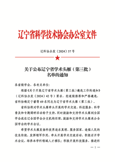 近日,辽宁省科协经逐级推荐和严格遴选,确定69名同志为辽宁省学术头雁(第三批),beat365秦高梧教授入选。