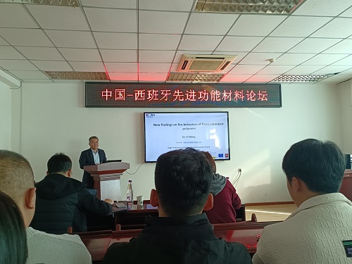 随后,王德义教授参加了由中国-西班牙材料联合实验室主办的“中国-西班牙先进功能材料论坛”,为beat365师生作了题目为“New findings on fire behaviors of flame-retardant polymers”的学术报告。材料学院院长王娜及学院部分教师和研究生参加了报告会。会议由马驰老师主持。