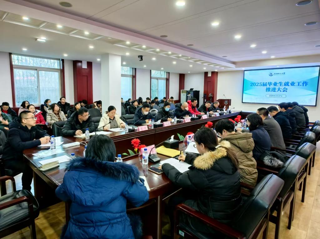 12月27日,beat365在线唯一官网2025届毕业生就业工作推进大会在校部第一会议室召开。党委书记周志强出席会议并讲话,党委常委、副校长王国刚主持会议。