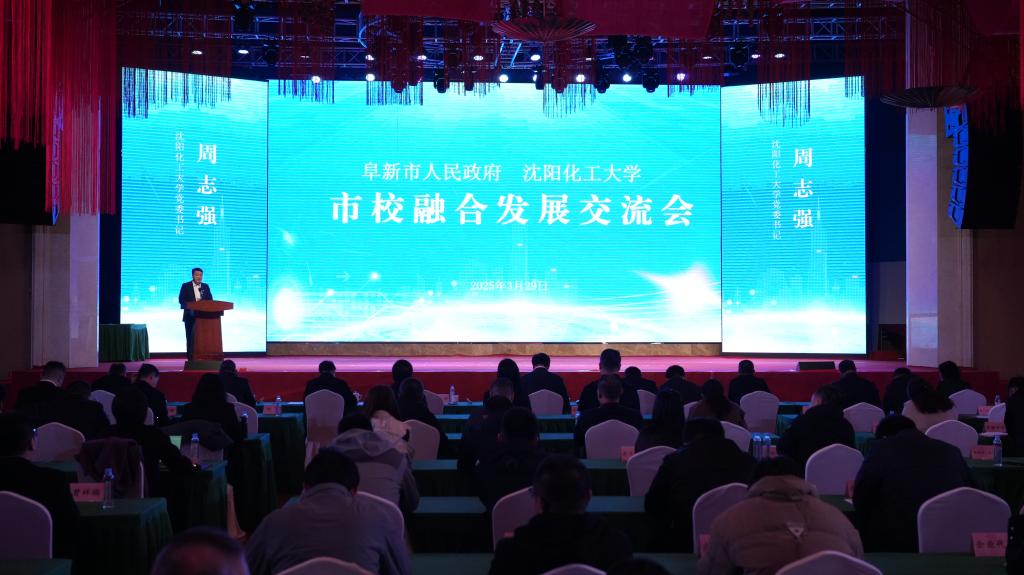 周志强作讲话。他指出,多年以来,化大与阜新交流合作密切,传统友谊深厚,形成了融合发展的坚实基础,奠定了双方合作发展的三个必然性:一是学科优势与产业需求的高度契合;二是“德能化大”与“厚道阜新”的人文相亲;三是双向奔赴与共“化”未来的发展共识。他表示,服务区域产业发展是高校的重要使命,深化校地融合是时代的必然要求,学校将聚焦科技创新赋能,共建产业升级新引擎;聚焦人才共育共享,共筑智力支撑新高地;聚焦校地深度融合,共绘协同发展新篇章,以务实举措精准推动校地双方高质量发展,以实实在在的工作实绩服务我省“四个万亿级”产业基地建设,在中国式现代化辽宁实践中展现出更大的担当和作为。