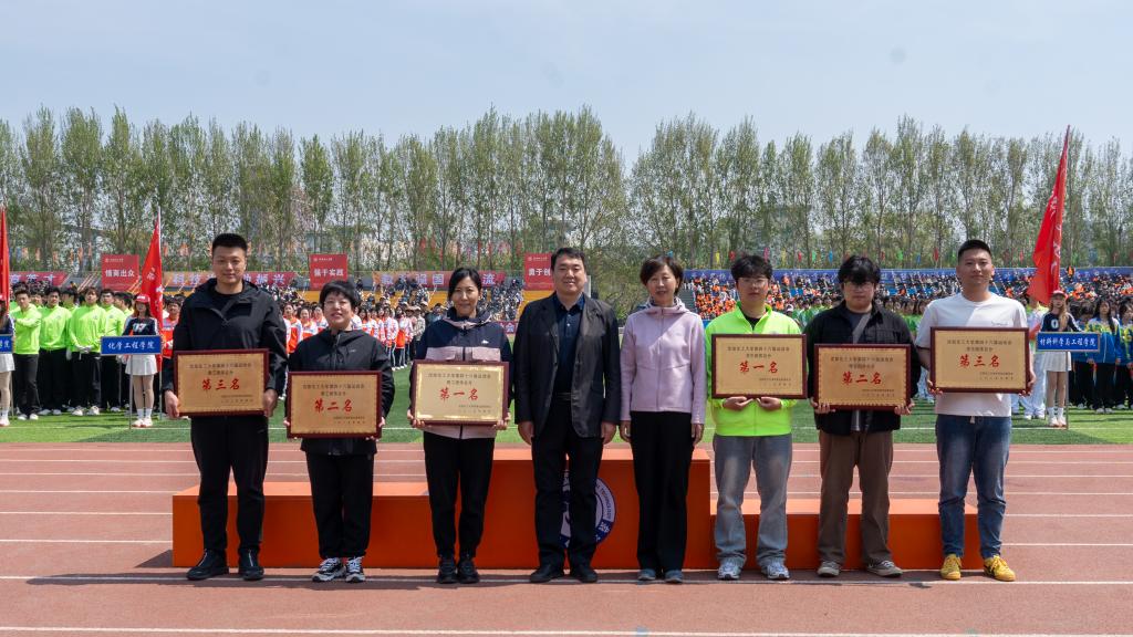 经过近一天半的激烈角逐,机关、机械与动力工程学院、化学工程学院、信息工程学院代表队分获教工团体总分第一至第四名;机械与动力工程学院、化学工程学院、经济与管理学院、材料科学与工程学院代表队分获学生团体总分第一至第四名。机关、经济与管理学院、环境与安全工程学院、理学院、外国语学院、马克思主义学院6个代表队获得教工组体育道德风尚奖;信息工程学院、经济与管理学院、机械与动力工程学院、化学工程学院、国际教育学院、计算机科学与技术学院、材料科学与工程学院、人文与艺术学院8个学院获得学生组体育道德风尚奖。本次比赛共有1人2项(学生男子800米、男子3000米)打破beat365纪录。校青年志愿者协会获得本届运动会突出贡献奖。