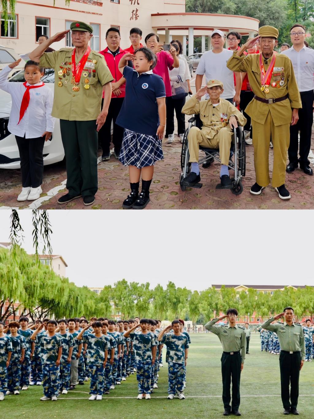 随后,老英雄们乘车赶往碧帆楼报告厅出席访谈活动。途经体育场,正在军训的大一新生自发地响起了热烈掌声,致敬英雄。老英雄们下车来到同学们面前,跨越近八十载的两代人,以庄严的军礼表达了最真挚的情感,场面令人动容。
