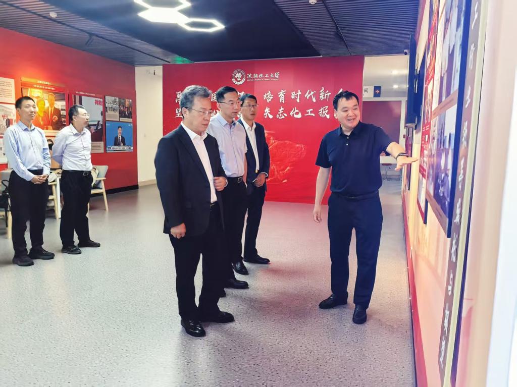 在化工报国·新时代雷锋精神育人中心,校党委书记周志强详细介绍了育人中心建设情况及学校化工报国的光荣传统。