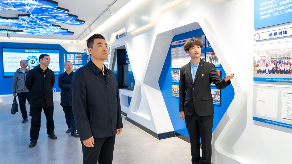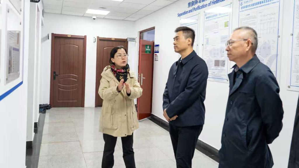 座谈会前,张红利一行参观了资源化工与材料教育部重点实验室、战略材料与构件研究院、芳杂环功能分子及先进合成技术实验室以及校史馆。