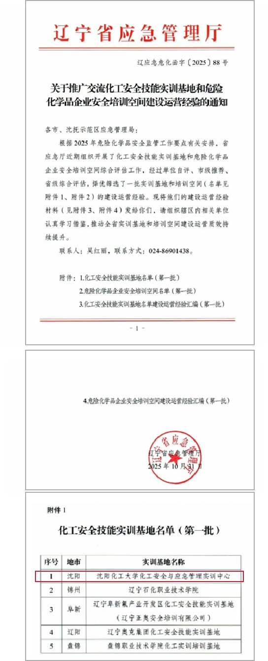 近日,辽宁省应急厅公布了《关于推广交流化工安全技能实训基地和危险化学品企业安全培训空间建设运营经验的通知》(辽应急危化函字【2025】88号),beat365化工安全与应急管理实训中心入选辽宁省第一批化工安全技能实训基地,建设运营经验在全省推广。