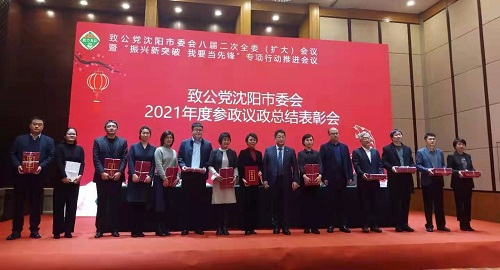 2月25日,在致公党沈阳市委会八届二次全委会议中,姜新东、金辉、张光伟等撰写的“关于全面推进乡村振兴加快农业农村现代化的建设”“充分发挥高校优势,加强对外文化交流”“加强对外文化交流的路径浅析”“关于发挥留学归国人员作用 促进人才资源发展的建议”等4项建议,荣获2021年度致公党沈阳市委员会参政议政优秀成果。姜新东、金辉、张光伟等3人,荣获2021年度致公党沈阳市委员会参政议政工作先进个人。