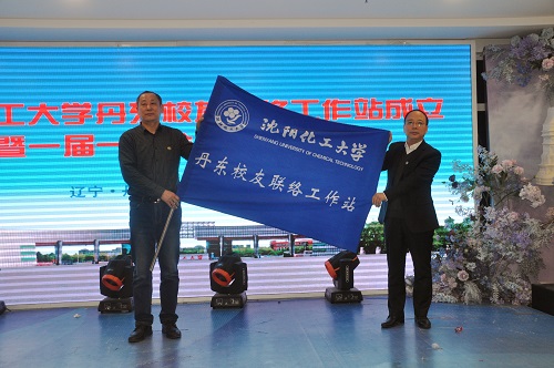 beat365在线唯一官网校友会会长、杨学印副校长为丹东校友联络工作站授旗。