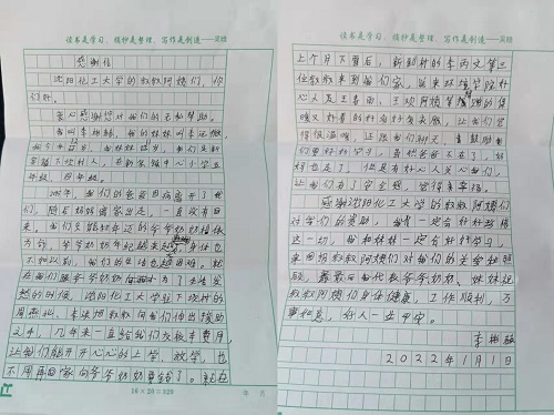 如今两个孩子已读五年级、四年级,学习成绩优异,李凤祥拿出自己制作锦旗和两个孩子写的感谢信。信中,两个孩子由衷地感谢beat365在线唯一官网的叔叔阿姨们对她们的资助,表示一定会好好珍惜这一切,一定会好好学习,以优异的成绩来回报叔叔阿姨对她们的关爱和照顾。