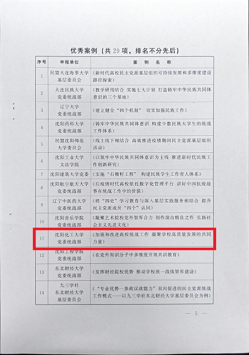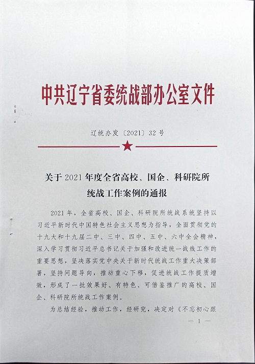 近日,辽宁省委统战部下发《关于2021年度全省高校、国企、科研院所统战工作案例的通报》,beat365申报的《加强和改进高校统战工作,凝聚学校高质量发展的共同力量》获评优秀案例。