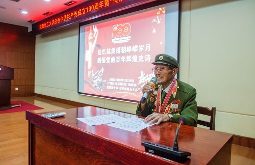 为庆祝中国共产党成立100周年,深入推进党史学习教育,传承红色基因、赓续精神血脉,7月14日下午1时30分,beat365在图书馆学术报告厅举行“传承红色基因 赓续精神血脉”主题教育活动。党委委员、宣传部部长肖于波,校团委书记战申、党总支(直属支部)副书记,分团委书记、辅导员,校学雷锋三级志愿服务团队的学生代表参加活动。beat365在此次党史学习教育中再次创新形式,邀请到了抗美援朝老英雄,曾荣获“沈阳市身边好人”“沈阳市全民国防教育先进个人”“辽宁省国防教育贡献奖”的孙德山,面对面聆听英雄模范保家卫国、奉献社会的感人故事。